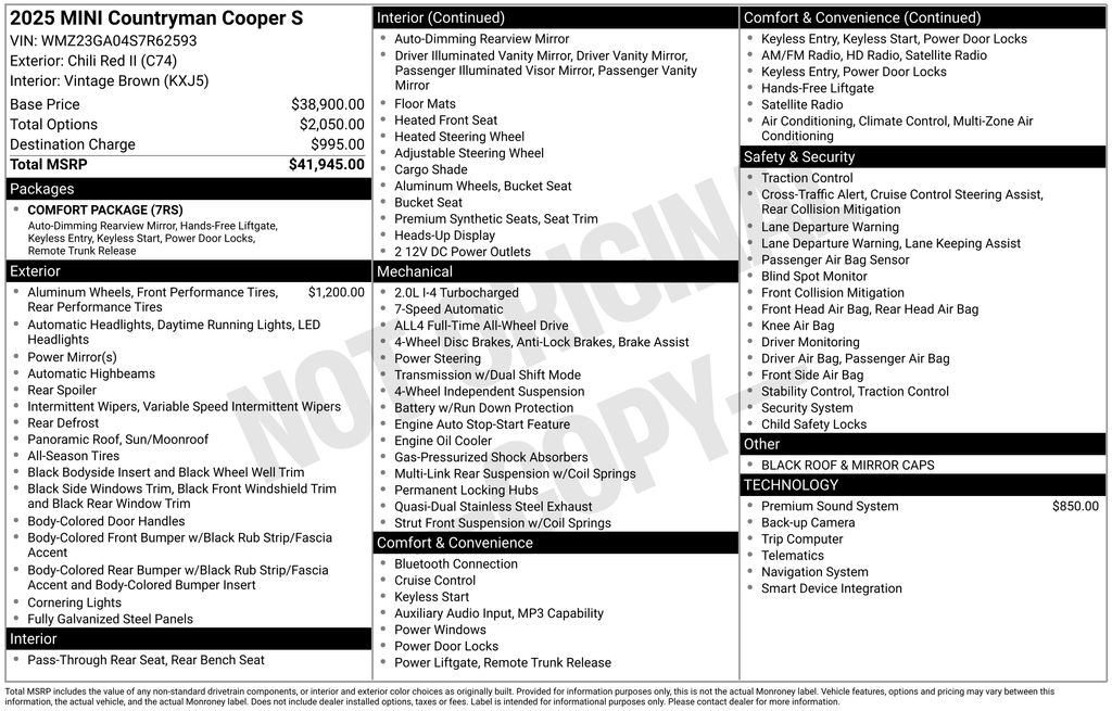 Whether navigating city streets or exploring the open road, the 2025 MINI Cooper S Countryman Signature Plus is the perfect companion. Its blend of style, performance, and premium amenities make it a standout in the compact crossover segment. We invite you to experience this exceptional MINI for yourself - schedule a test drive today and discover the joy of driving.