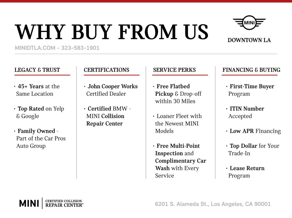 Standout additions to this Signature Plus model include - â the 20" Windmill Spoke wheels with summer tires, the premium Harman/Kardon surround sound system, and the Classic, Comfort, and Favoured Style packages. You'll also enjoy the convenience of the power liftgate, wireless device charging, and the Comfort Access keyless entry. Safety and technology are prioritized with advanced features like the heads-up display, auto-dimming mirrors, and MINI Connected infotainment.