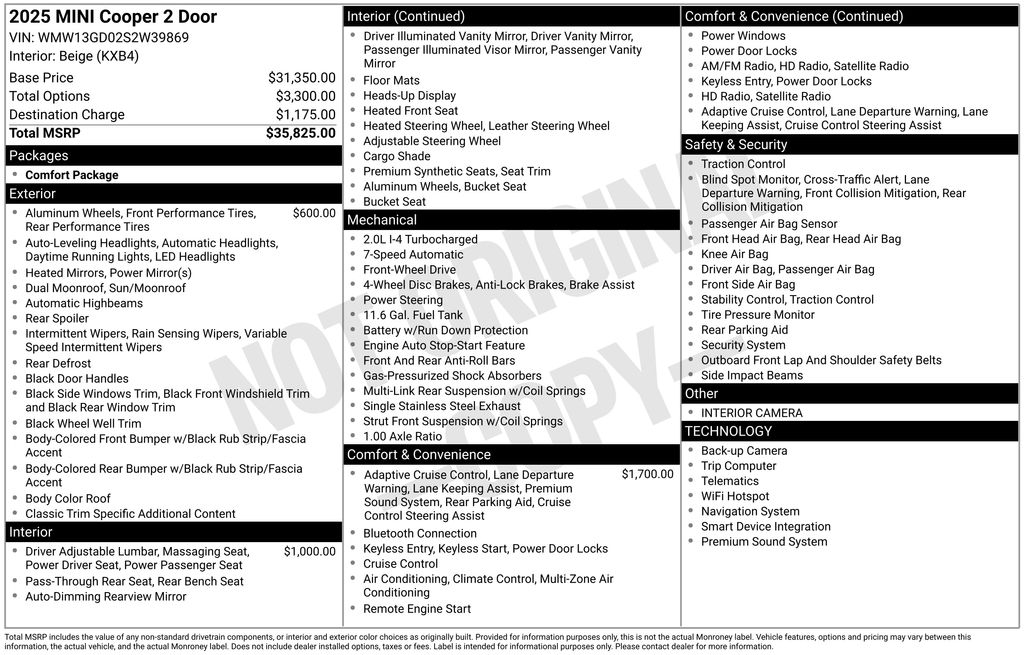 The Iconic's refined interior further enhances the MINI's appeal, with luxurious Vescin upholstery, a Heads-Up Display, and a premium harman/kardon Surround Sound System that will delight your senses. The Power Front Seats with Lumbar Support ensure exceptional comfort and support, while the Parking Assistant Plus and Interior Camera provide added convenience and peace of mind when navigating tight spaces.
